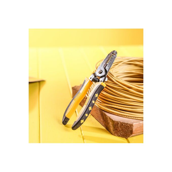 Многофункциональный стриппер DELI DL2607 0,6-2,6 мм 98343 предназначен для зачистки проводов и снятия изоляции. Инструмент изготовлен из высококачественной углеродистой стали с чёрной отделкой, что обеспечивает высокую прочность и долговечность. Стриппер оснащён пружинным механизмом для удобства работы. Эргономичная ПВХ рукоятка служит для удобного захвата.