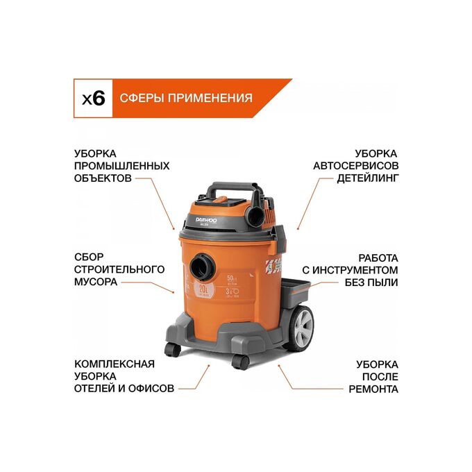 Строительный пылесос Daewoo DAVC 2014 1400Вт (уборка: сухая/сбор воды/выдув) оранжевый