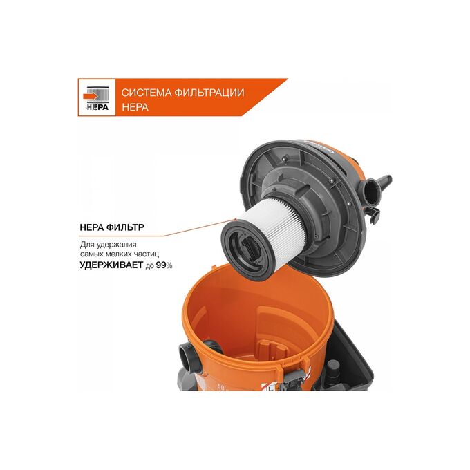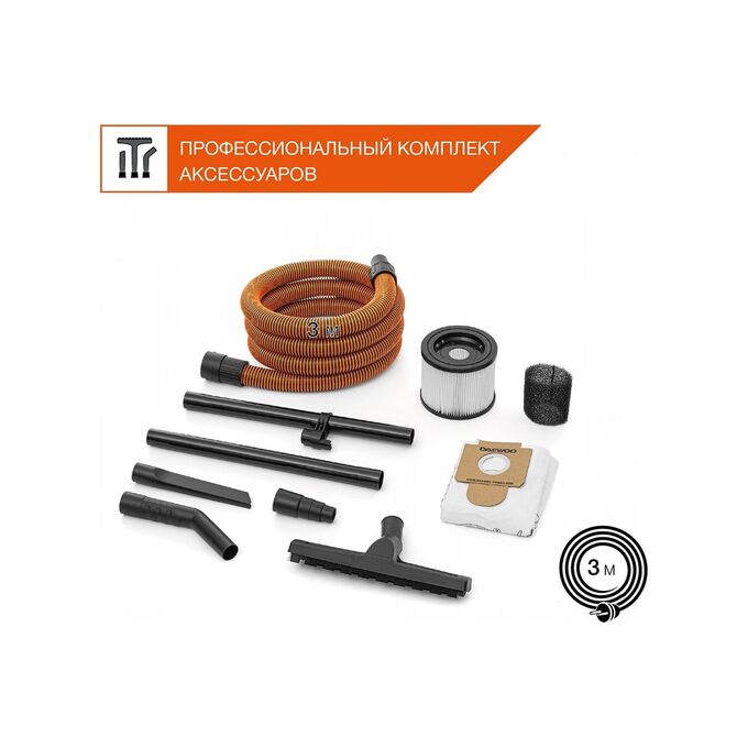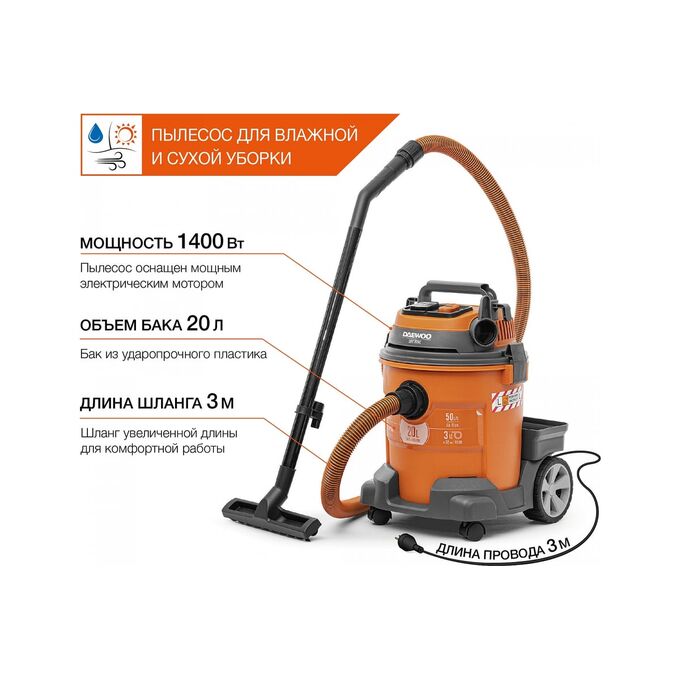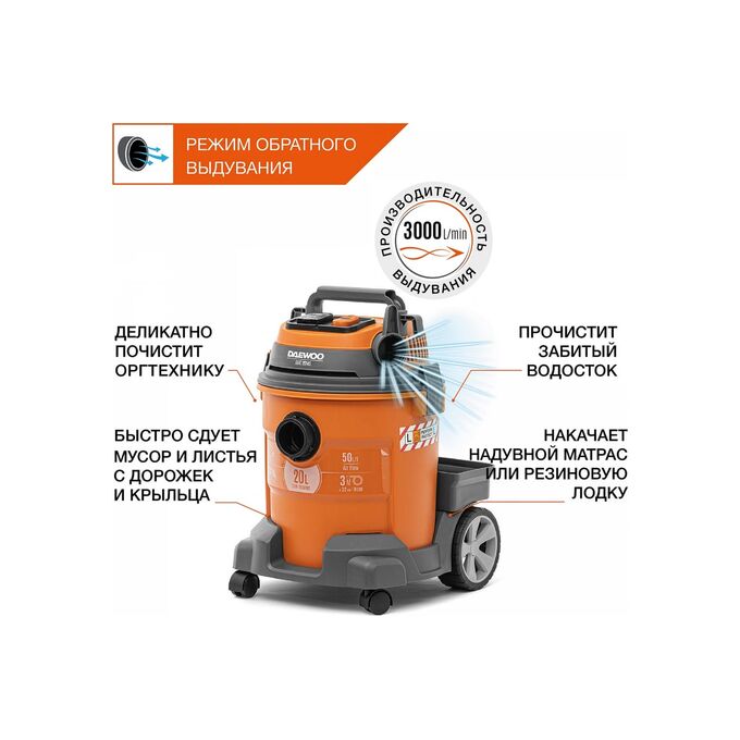 Строительный пылесос Daewoo DAVC 2014S 1400Вт уборка сухая/сбор воды/выдув оранжевый