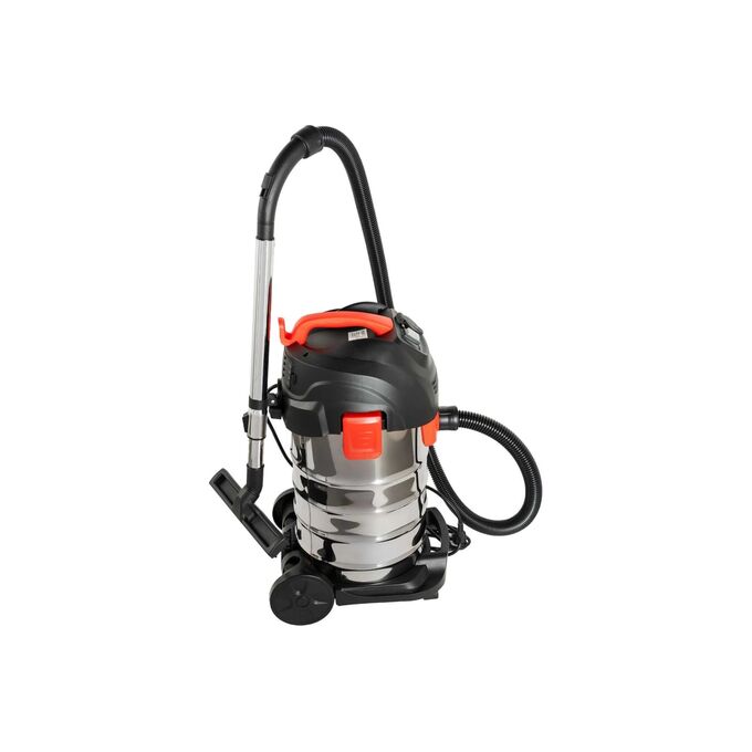 Пылесос используется для всасывания сухого и влажного мусора. Применяется для уборки промышленных предприятий, торговых центров и мастерских. На корпусе пылесоса имеется розетка для подключения электроинструмента мощностью 1400 Вт.