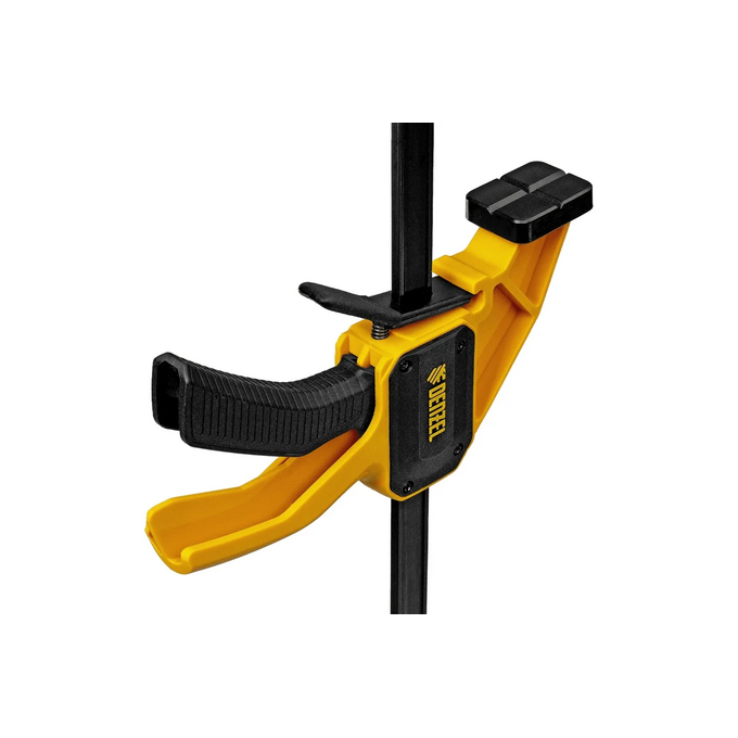 Комфортное использование — струбцина весит всего 620 г, обрезиненная кнопка фиксации обеспечивает удобный захват