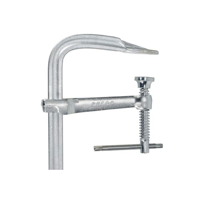 Кованая струбцина - это приспособление для зажима детали при обработке. Относится к типу F-образных струбцин и изготовлена из стали методом ковки, поэтому отличается высокой прочностью и длительной эксплуатацией. Зажим производится по всей длине штанги.