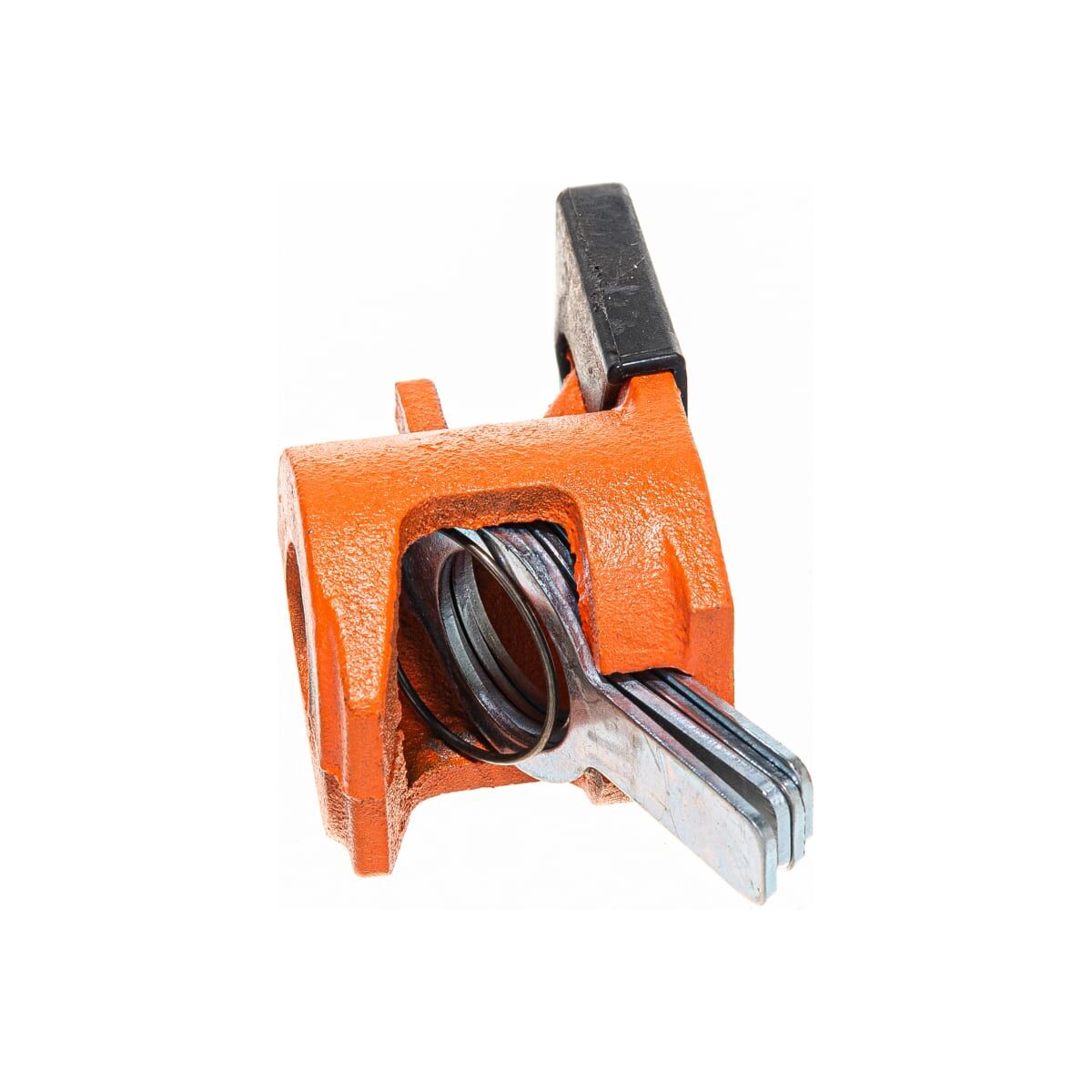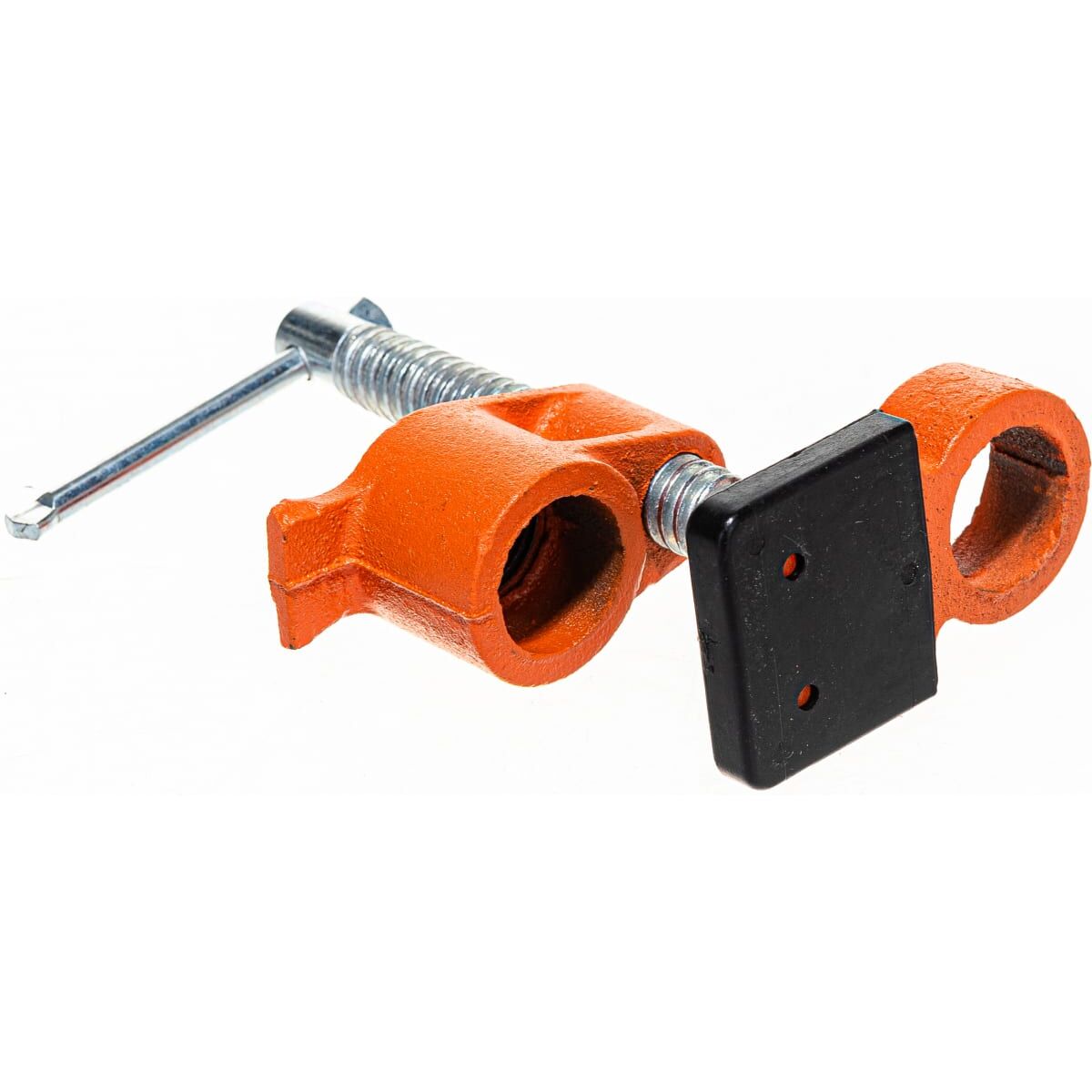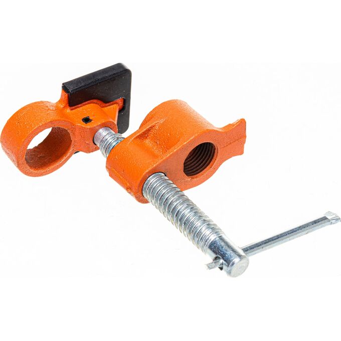 Трубная струбцина предназначена для зажима металлических труб диаметром 1/2 дюйма. Прочная резьба затяжного винта имеет крупный шаг, что позволяет быстро зажать заготовку.