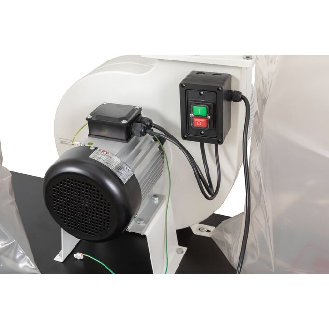 Пылесос/стружкоотсос JET DC-2300 10001055M используется в сфере промышленности как дополнительное оборудование для деревообрабатывающих станков. Модель оснащается металлической крыльчаткой, которая отличается устойчивостью к механическим повреждениям при прохождении через нее стружки. Установка мешков осуществляется легко и быстро при помощи системы специальных хомутов. Мощный двигатель обеспечивает уверенную работу стружкоотсоса без частой остановки для охлаждения. Сбор мусора осуществляется в 2 пылесборных мешка объемом по 200 л каждый (суммарный объем - 400 л).