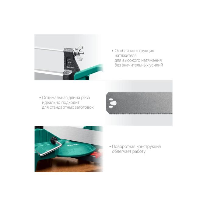 Рамка ножовки изготовлена из холоднокатаной стали и имеет точное прямоугольное сечение. Основание изготовлено из высококачественного ударопрочного пластика.