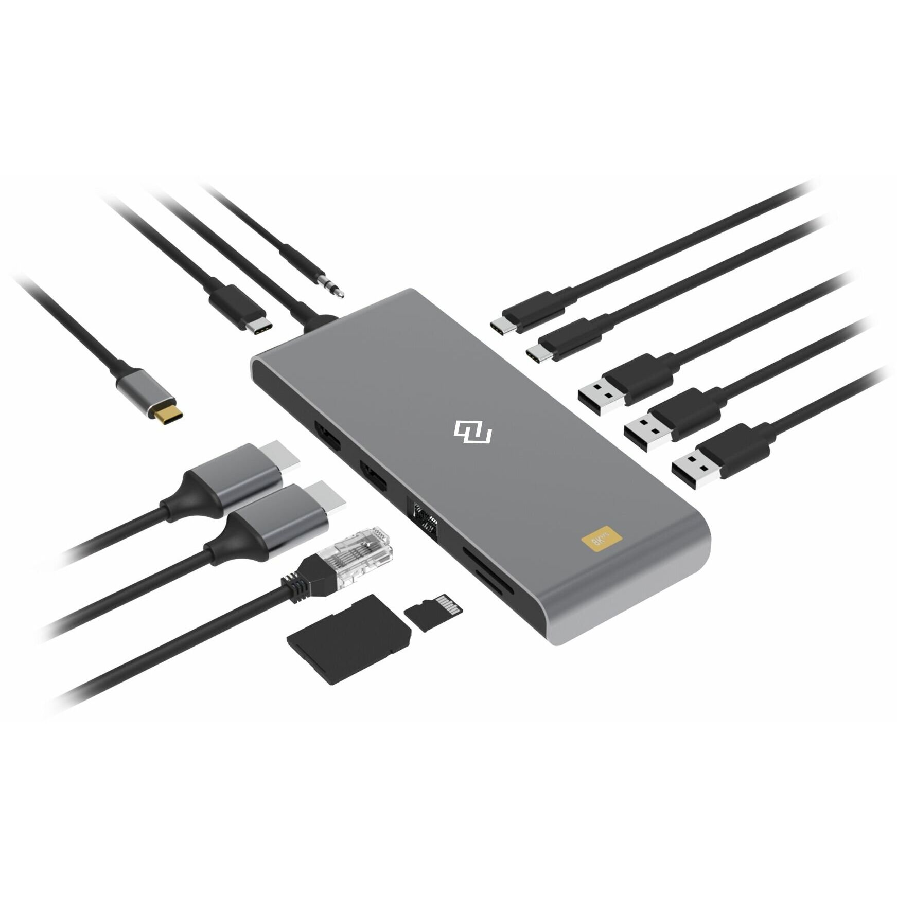 Type-C док-станция DIGMA, 12 портов - 1*HDMI (8K@30Hz, 2K/FULL HD@144Hz), 1*HDMI (4K@60Hz), 2*USB-C 3.2 Gen2 (10Gbps), 2*USB-A 3.2 Gen1 (5Gbps), 1*USB-A 3.2 Gen2 (10Gbps), 1*RJ45 (2.5Gbps), 1*SD 4.0 Card (218M/s), 1*TF 4.0 Card (218M/s), 1*3.5mm Audio Jack, 1x USB-C PD (up to 100W)