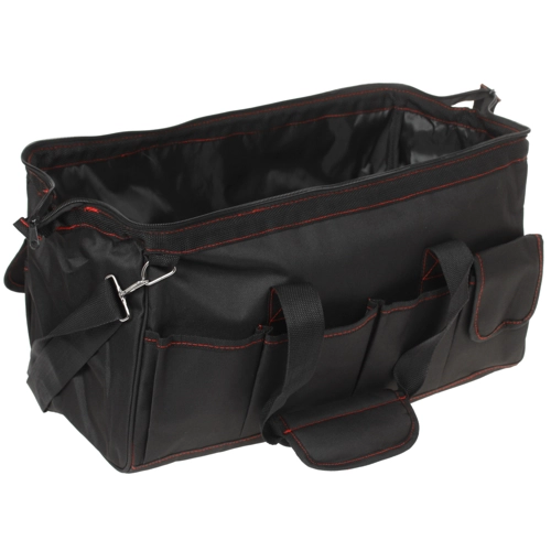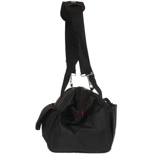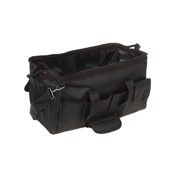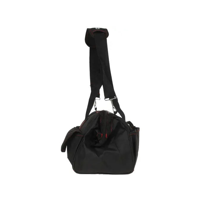 Сумка обладает длиной 460 мм и предназначена для хранения различных инструментов. С ее помощью вы сможете удобно транспортировать необходимые инструменты. Данная сумка оснащена основным вместительным отделением с застежкой на молнии и несколькими дополнительными карманами для небольших предметов. Сумка изготовлена из брезента – материала, который одновременно сочетает в себе прочность, водонепроницаемость и устойчивость к износу. Среди других особенностей сумки отмечаются две текстильные ручки и съемный ремень с металлическими карабинами для размещения на плече.