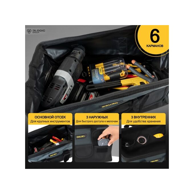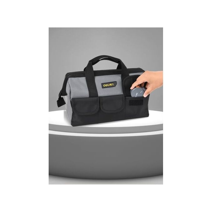 Сумка для инструментов Deli DL430018 используется для хранения и транспортировки инструмента, хранения малярных и отделочных инструментов, прекрасно подходит для похода на рыбалку и даже в качестве сумки для фитнеса.