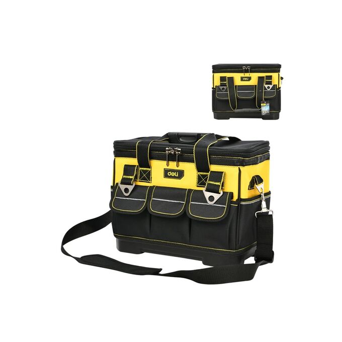 Сумка для инструментов каркасная с жестким пластиковым дном Deli DL586112 14 карманов, плечевой ремень, ткань Оксфорд 600D