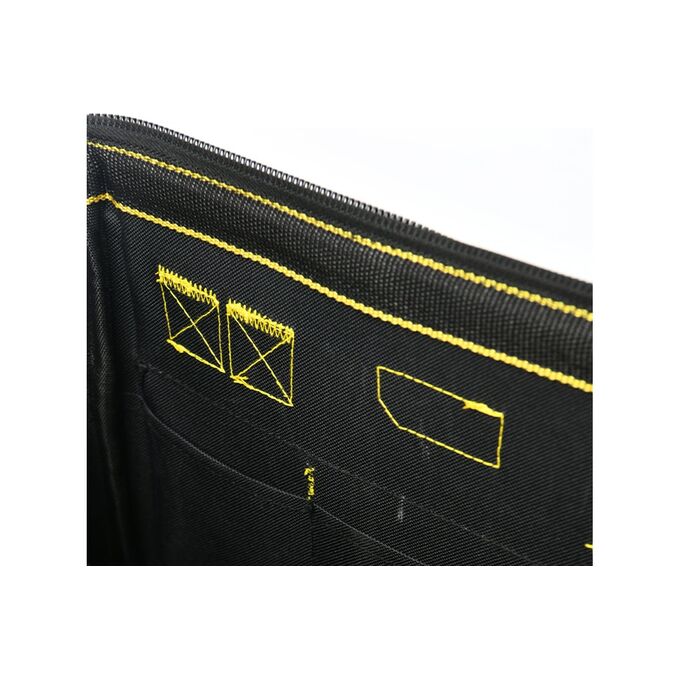 - Органайзеры: Объёмный основной отсек, 8 наружных карманов, 8 внутренних карманов, 1 карман-сетка на крышке – удобная сортировка инструментов и мелочей.