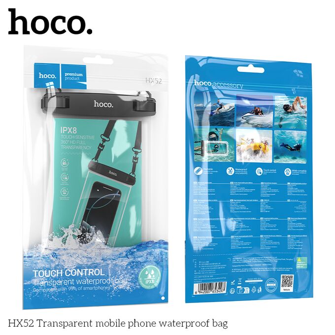 Чехол водонепроницаемый HOCO HX52 для смартфонов обеспечивает безопасное и удобное хранение вашего телефона, позволяя вам свободно двигаться и заниматься любимыми делами.