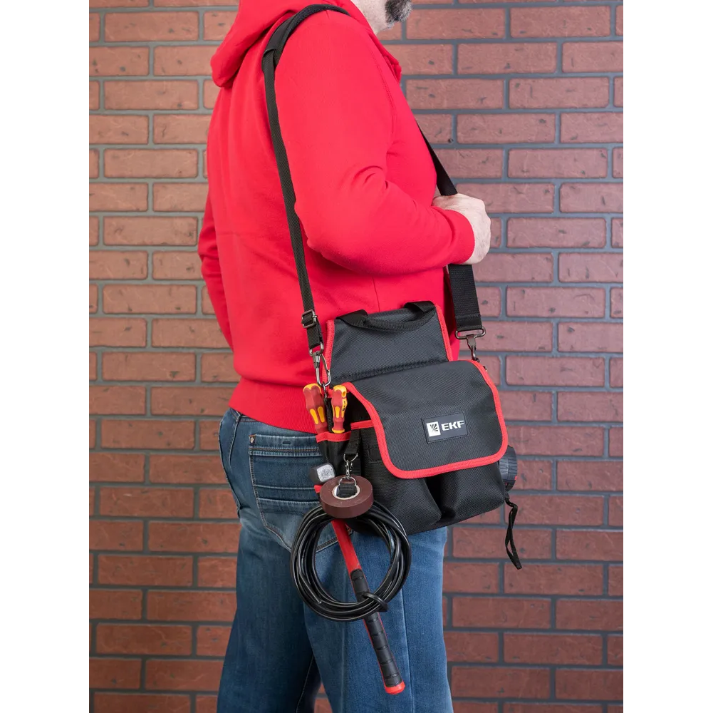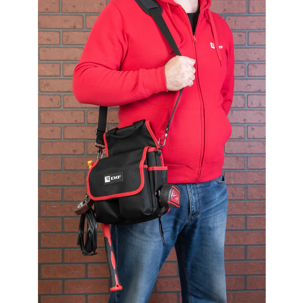 Преимущества поясной сумки монтажника EKF с крышкой и ремнем C-14
