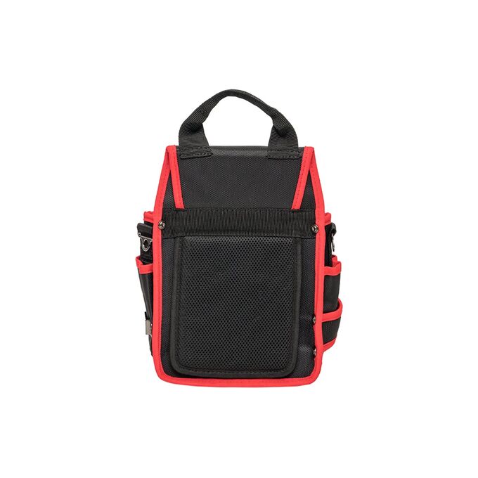 В соответствии с пожеланиями электриков сумка снабжена защитной крышкой. Карманы выполнены из материала EVA, отличающегося повышенной прочностью и износостойкостью. Хорошо держат форму. Особенно удобны для хранения расходных материалов.