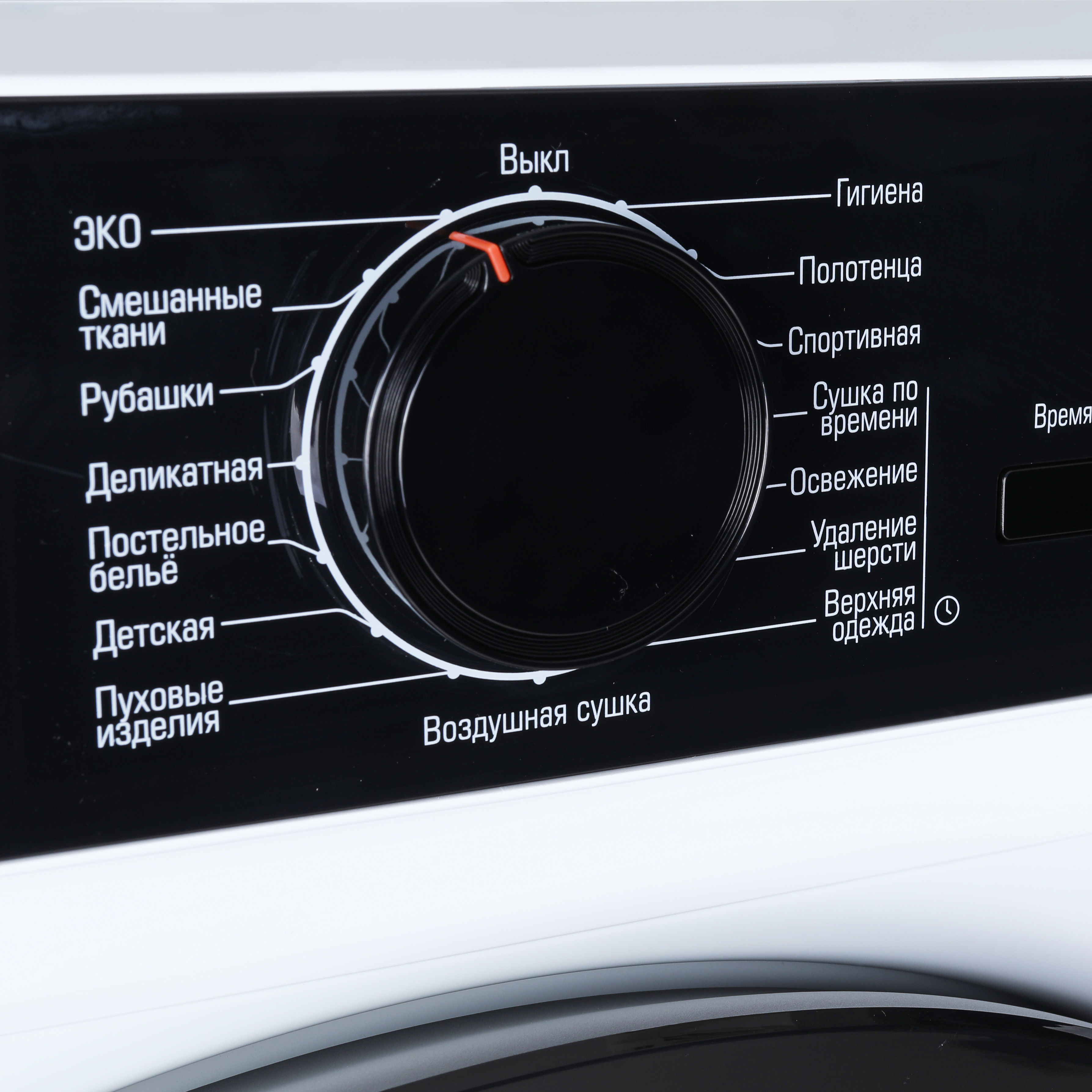 Без складок, Выбор степени сушки (глаженье, обычная, интенсивная, максимальная), Отложенный старт, Блокировка от детей, Дозагрузка белья, Подсветка барабана, Выбор продолжительности сушки