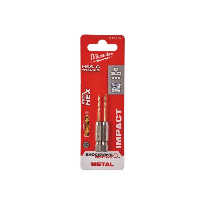 Сверла по металлу Milwaukee Redhex 48894703 HSS-G TiN 2,0мм (2шт)