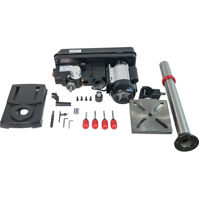 Сверлильный станок с асинхронным двигателем 550 Вт предназначен для точного сверления различных материалов. Плавная регулировка скорости вращения шпинделя от 440 до 2580 об/мин позволяет оптимально подбирать режимы для работы с металлом, деревом и пластиком. Станок оснащен лазерным целеуказателем для точного позиционирования сверла. Максимальный диаметр сверления составляет 13 мм при ходе шпинделя 60 мм. Компактные габариты 330x490x830 мм и вес 27.16 кг делают станок удобным для размещения в домашней мастерской.