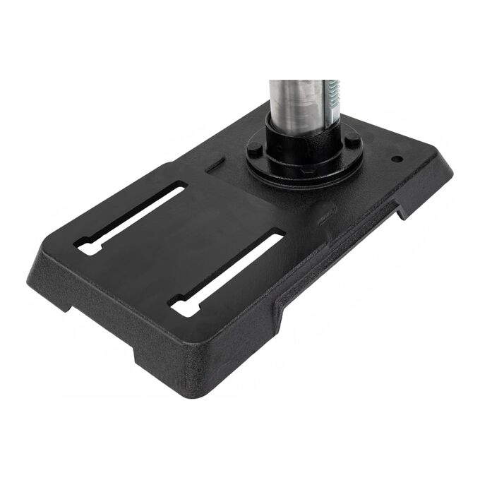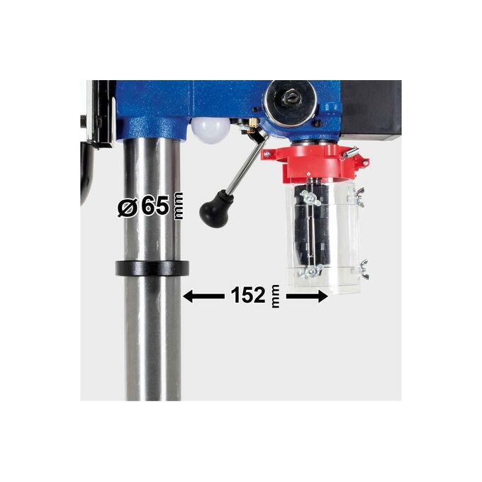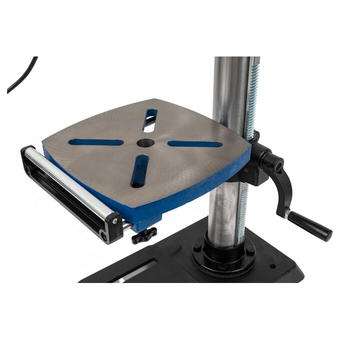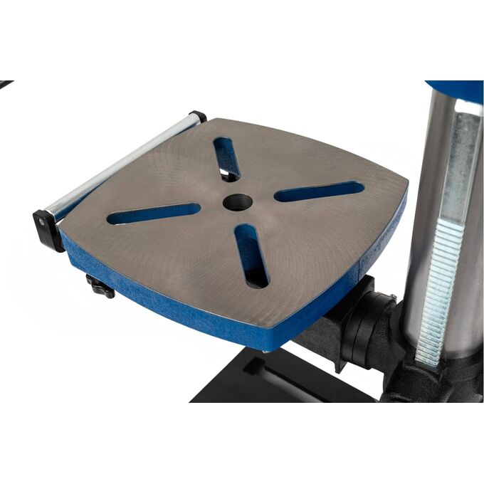 - Мощь и надежность. Прочная чугунная станина и двигатель 550 Вт обеспечивают уверенное сверление даже крупных заготовок.
