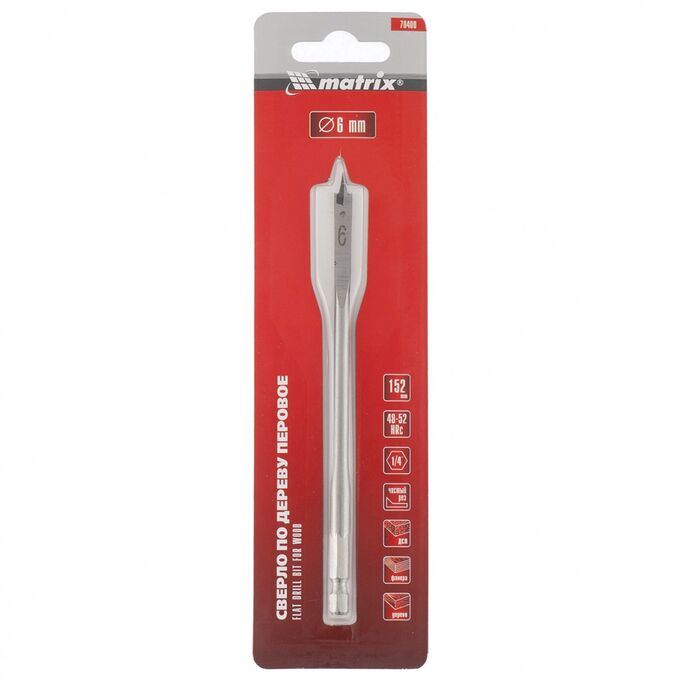 Сверло MATRIX 70400 по дереву, 6мм, шестигранный, 1шт