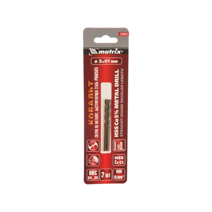 Сверло Matrix 71411 по металлу Д 3мм Дл 61мм (2пред.) для дрелей