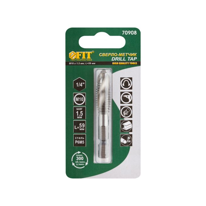 Сверло-метчик комбинированное метрическое FIT 70908 , М10х1,5 мм, 26/59 мм