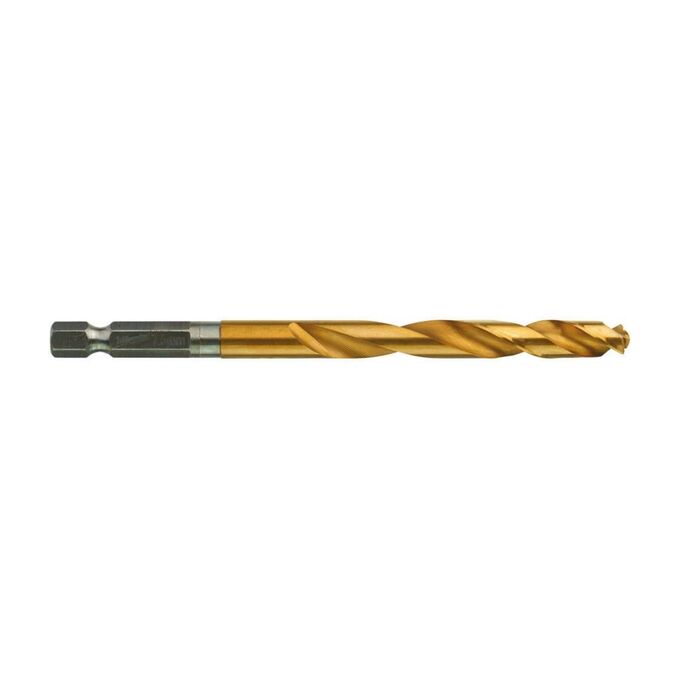 Сверло применяется для выполнения сквозных и глухих отверстий в металле. Изготовлено из быстрорежущей стали и имеет титановое покрытие, за счет чего равномерно распределяет нагрев при работе. Угол заточки в 135 градусов уменьшает биение сверла при засверливании. Шестигранный хвостовик обеспечивает надежное крепление в патроне.