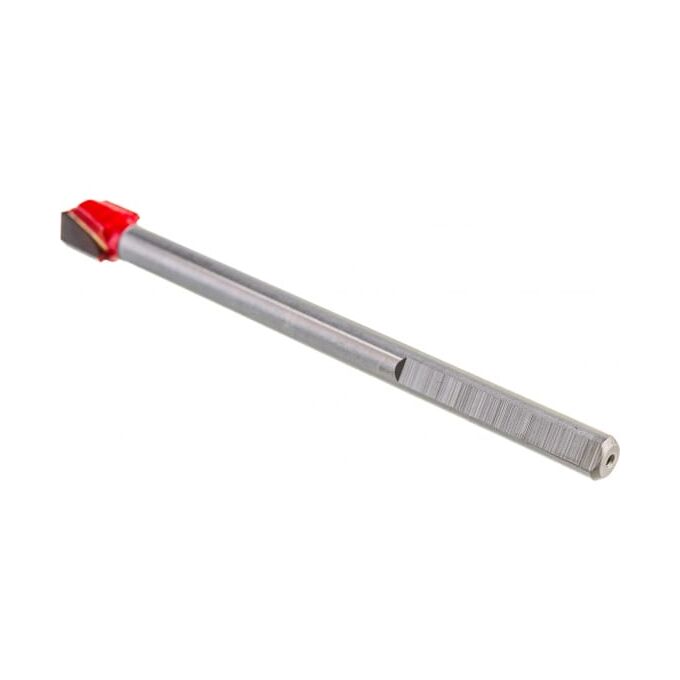 Сверло по стеклу и плитке подходит для сверления не каленого стекла, плитки мягкой и средней твердости, керамики. Режущая кромка сверла изготовлена из заточенного твердосплава, идеальна для быстрого сверления. Усиленная конструкция рабочей части увеличивает срок службы сверла. Наконечник окрашен в красный цвет. Хвостовик имеет грани для предотвращения проворачивания в патроне.