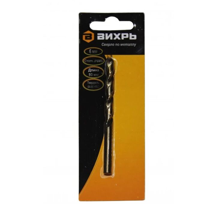 Сверло по металлу Вихрь 6 мм P6M5 (1 шт в блистере) 73/10/6/4
