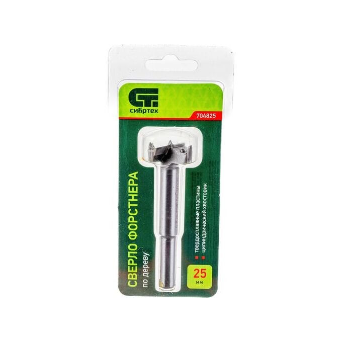 Сверло Сибртех 704825 по дереву Д-25мм Дл-77мм для дрелей/перфораторов