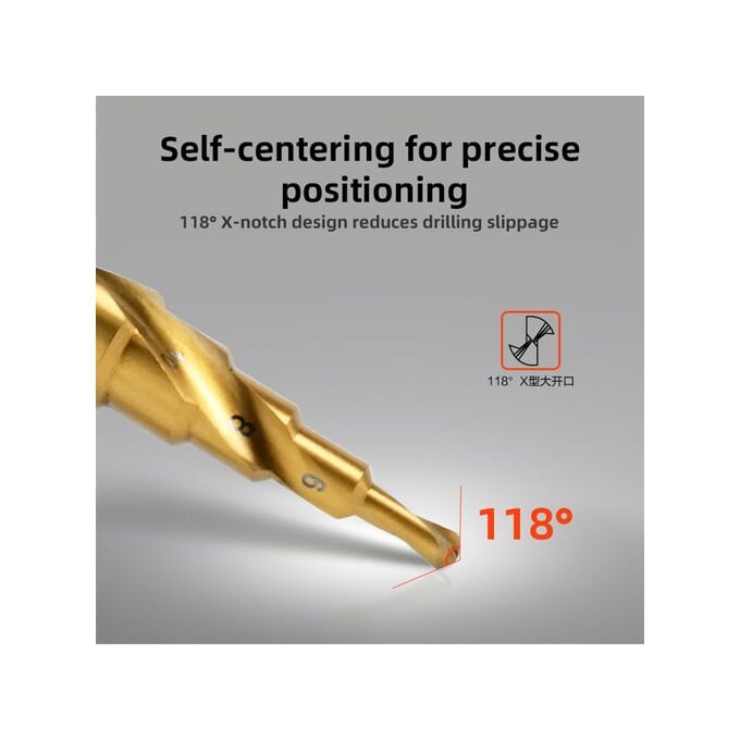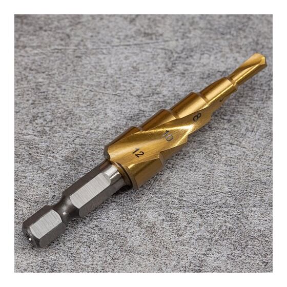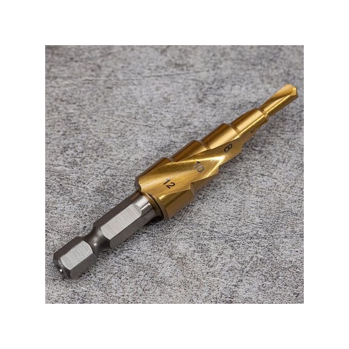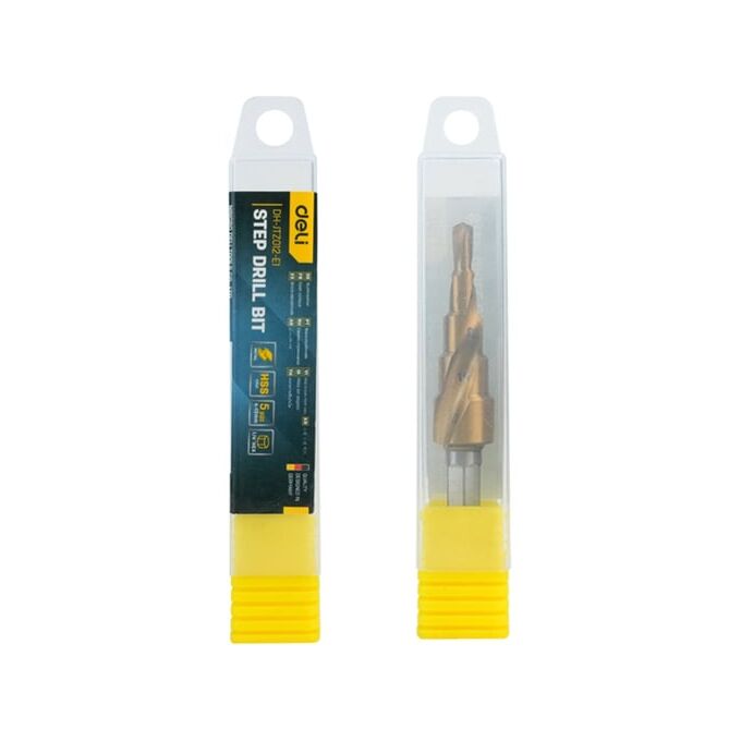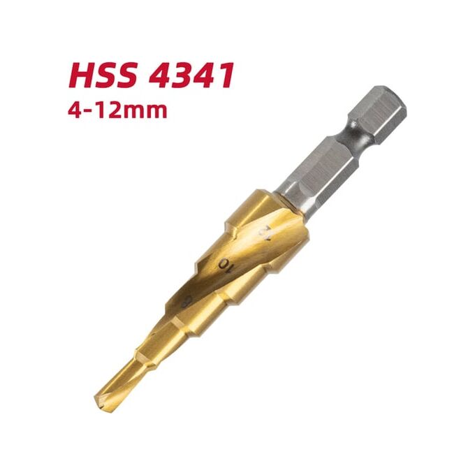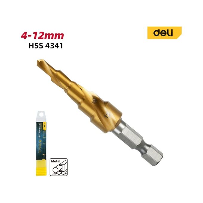Сверло ступенчатое по металлу Deli DH-JTZ012-E1 4-12мм, HSS 4341 спиральная канавка, шестигранный хвостовик