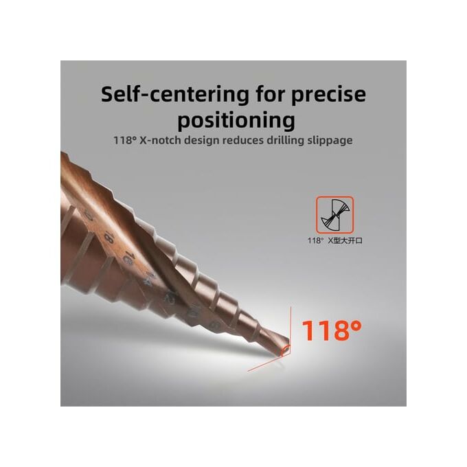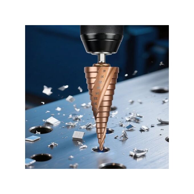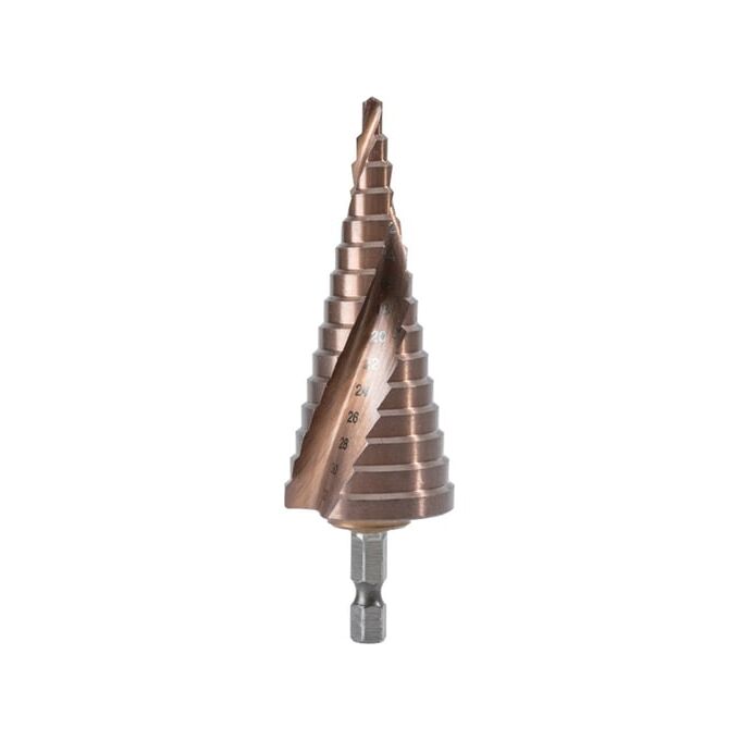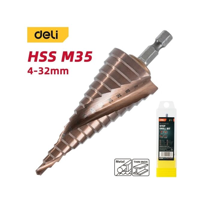 Сверло ступенчатое по металлу Deli DH-JTZ032-E3 4-32мм, HSS M35, спиральная канавка, шестигранный хвостовик