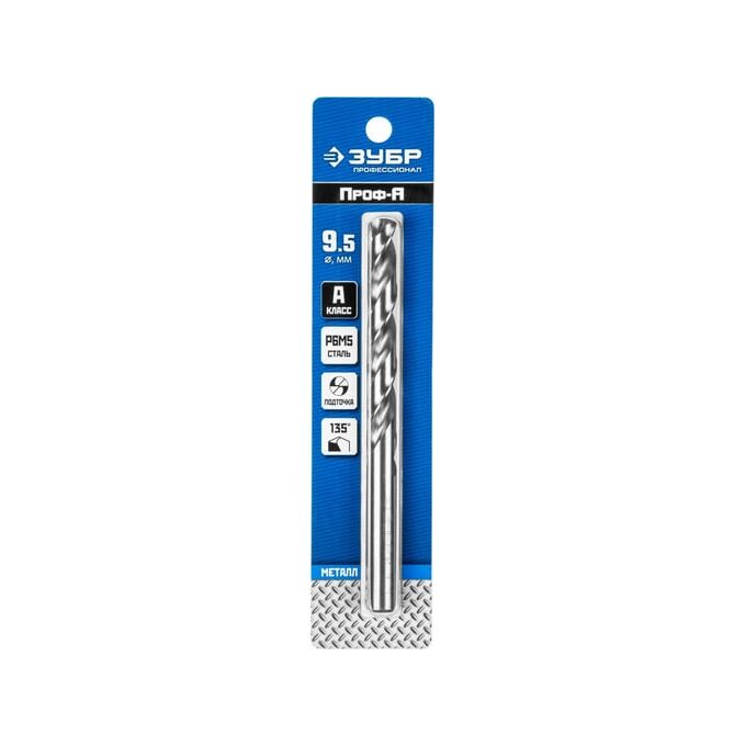 Сверло Зубр 29625-9.5 по металлу Д=9.5мм Дл=125мм (1пред) для дрелей