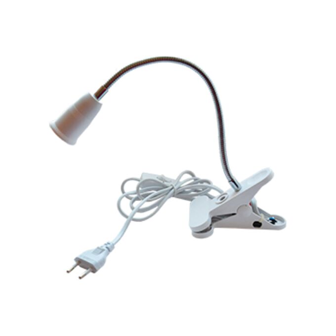 Светильник прищепка Ecola Base с вилкой, с выключателем, патрон e27, гибкий, 300мм, белый APF7FWEAY с проводом питания с выключателем длиной 170 см. Очень удобно использовать в местах, где нет света, но есть возможность закрепиться прищепкой. Гибкая трубка позволяет направить свет в любое нужное вам место.