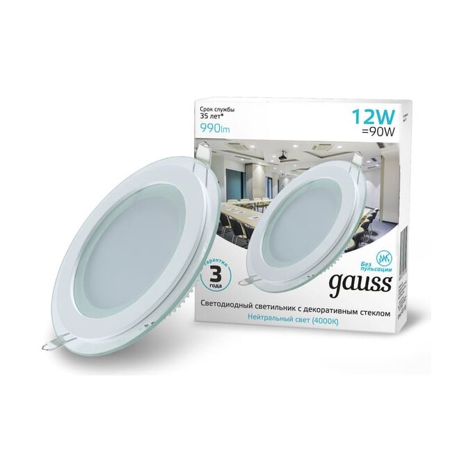 Технические характеристики Gauss с декоративным стеклом, 12W 4000K 947111212