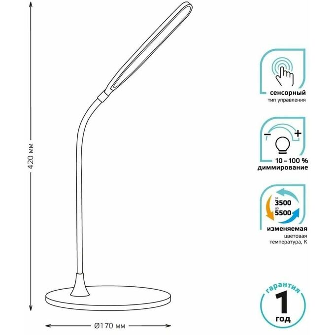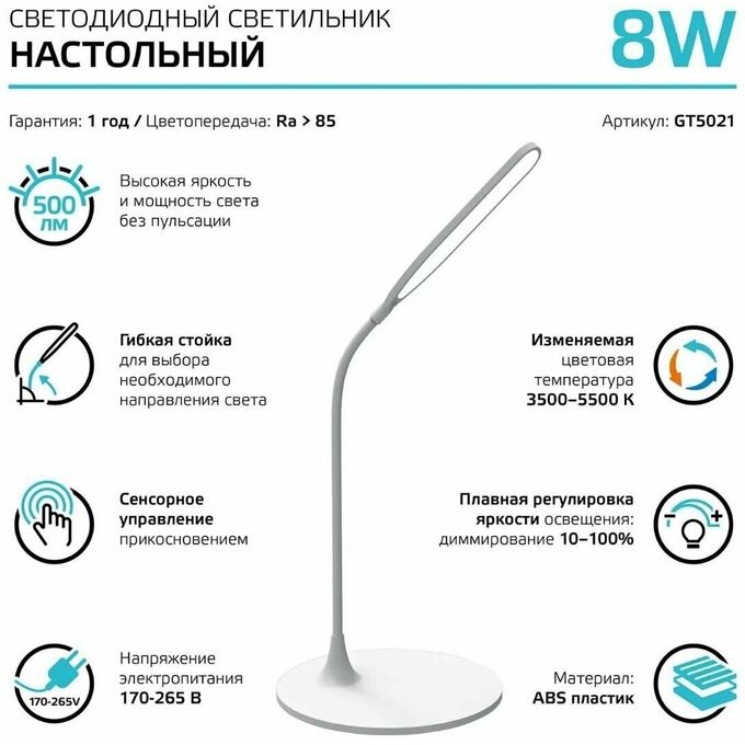Светильник Gauss GT5021 настольный на подставке белый 8Вт