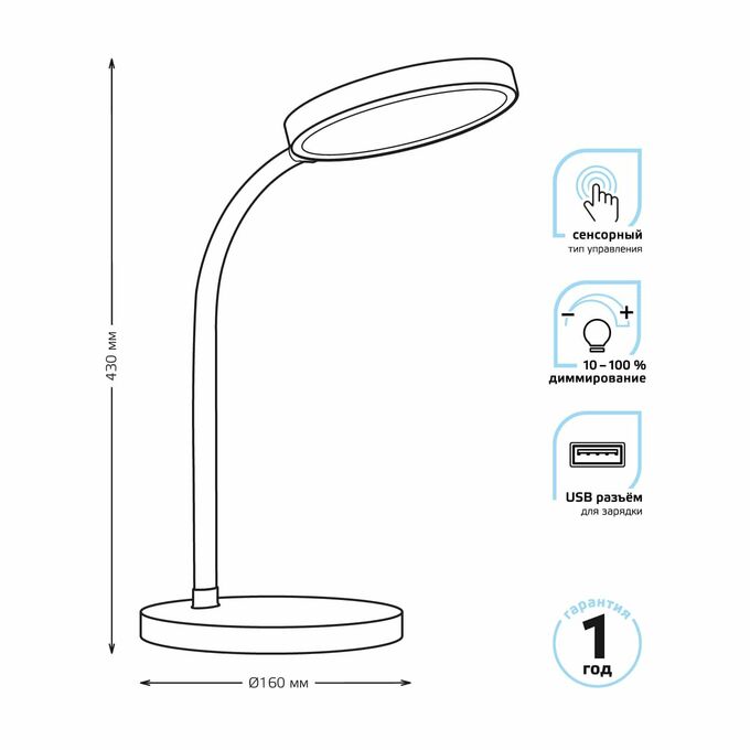 Светильник Gauss GT5031 настольный на подставке белый 8Вт