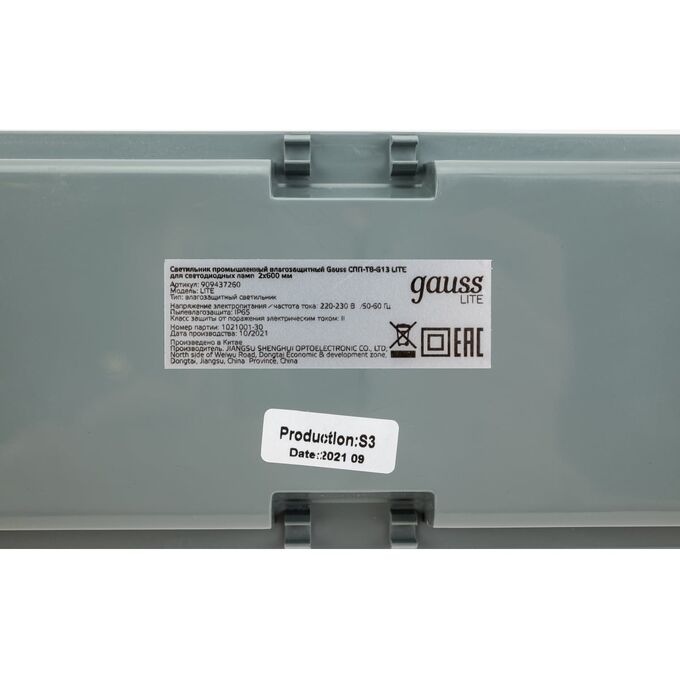Светильник Gauss Lite СПП-Т8-G13 (909437260) серый прямоугольный