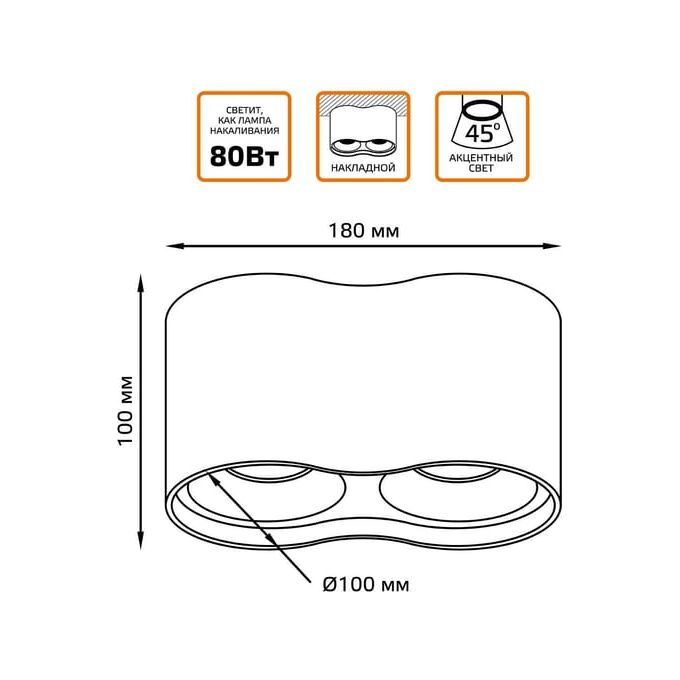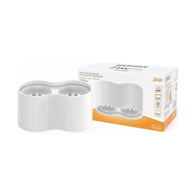 Светильник GAUSS Overhead HD032, 2x12 Вт, 3000К (белый теплый), белый