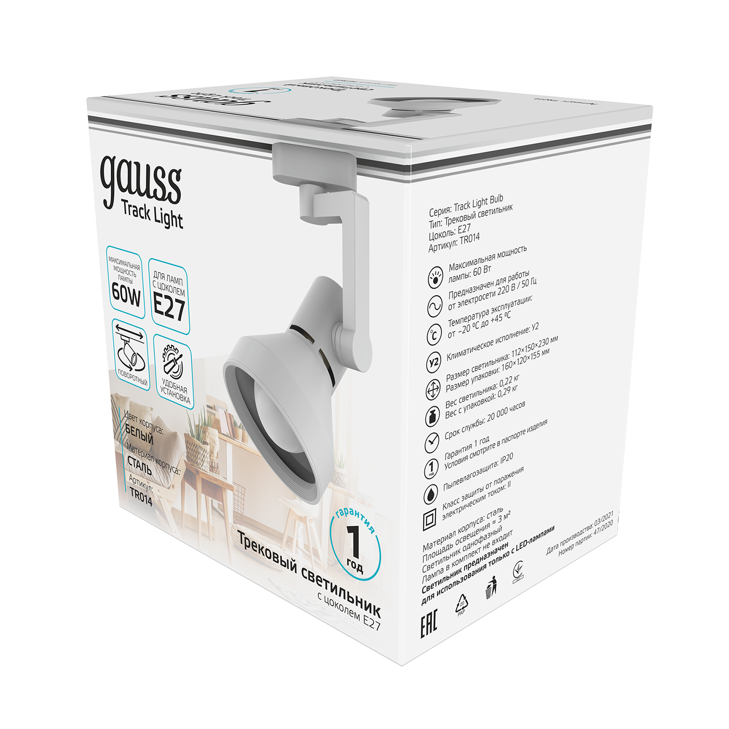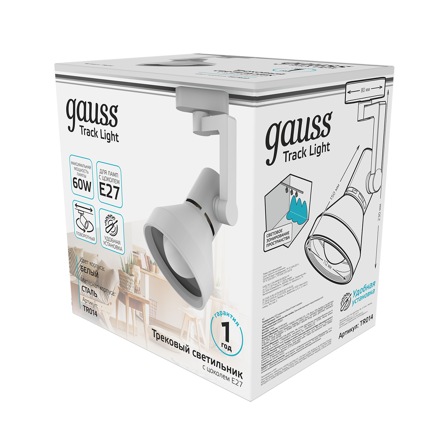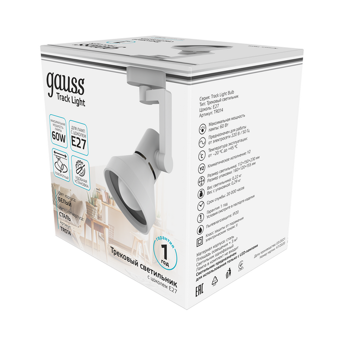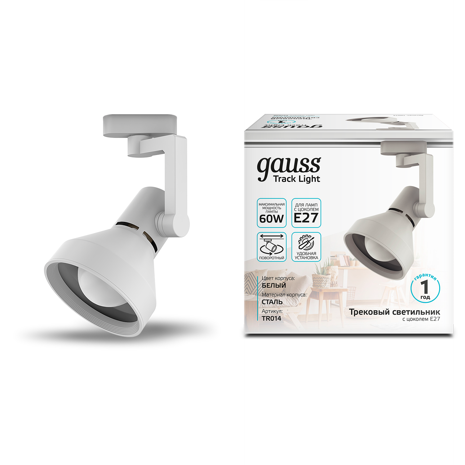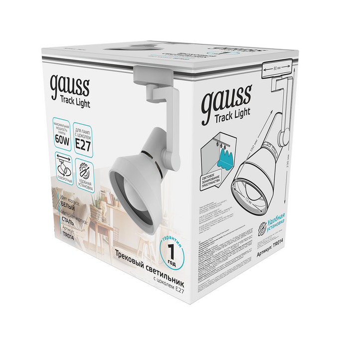 Светильник трековый Gauss конус E27 TR014 имеет лаконичный минималистичный дизайн и крепкий стальной корпус покрытый белой эмалью с ярким зеркальным отражателем. Что в совокупности с углом поворота 360 и максимального наклона по вертикали делает этот светильник оптимальным в использовании для точного освещения предметов или пространства. Световой луч (пучок) 41-80°, IP 20, максимально допустимая мощность ламп 60w. Подходит для сухих не сильно запыленных помещений: квартира, дом, офис; рабочие кабинеты, витрины магазинов, кафе и ресторанов.