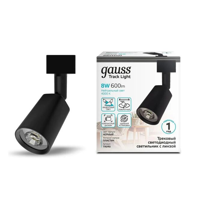 Светильник GAUSS TR090, 4000К, белый нейтральный, черный