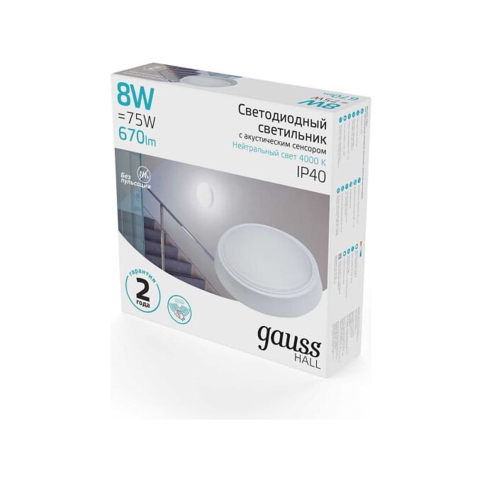 Светильник Gauss ЖКХ 193411208-OAS 8Вт 4000K белый датч.движения