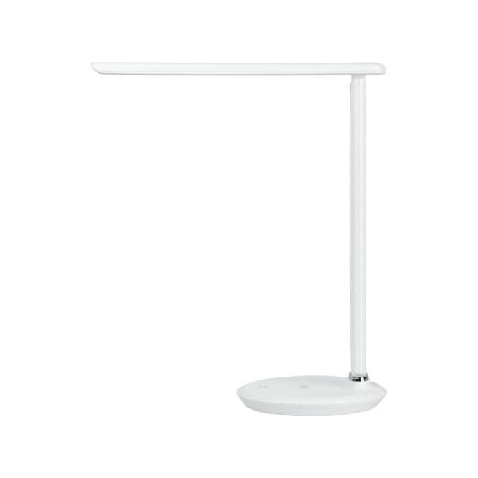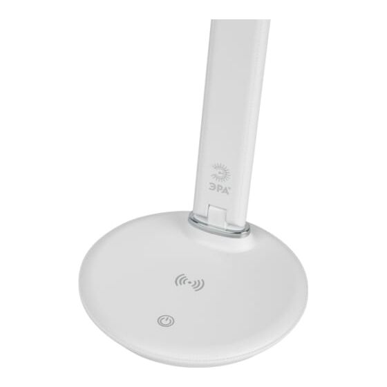 Настольный светильник ЭРА NLED-505-10W-W со светодиодами (LED) в качестве источников света в дизайне "под кожу". Удобная складная конструкция с сенсорным управлением, возможностью выбора цветовой температуры и плавным диммером для регулировки яркости. На основании светильника расположен встроенный модуль Qi для беспроводной зарядки мобильных устройств. Просто положите телефон, поддерживающий функцию Qi на основание светильника в отмеченной зоне - светильник подзарядит его. Главное преимущество светильника - многофункциональный дисплей с функциями часов, будильника, календаря и термометра.