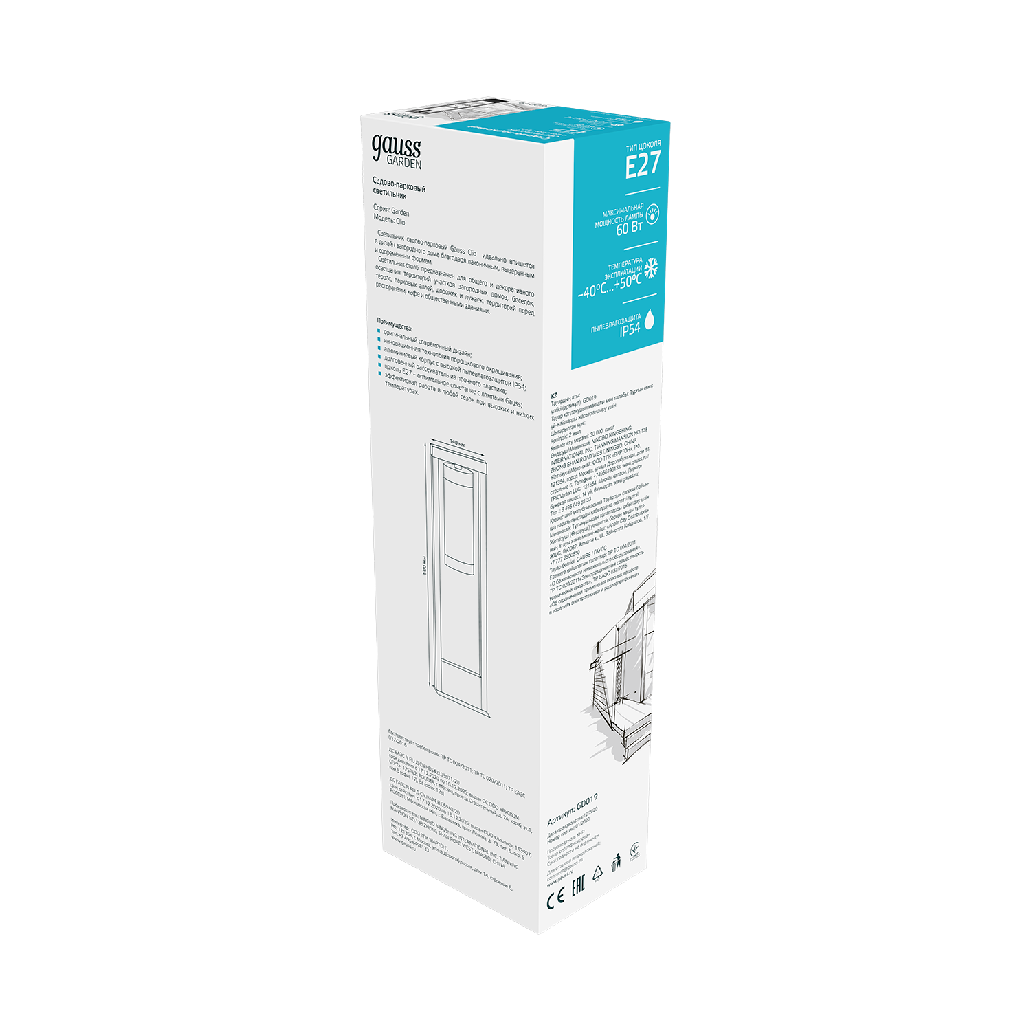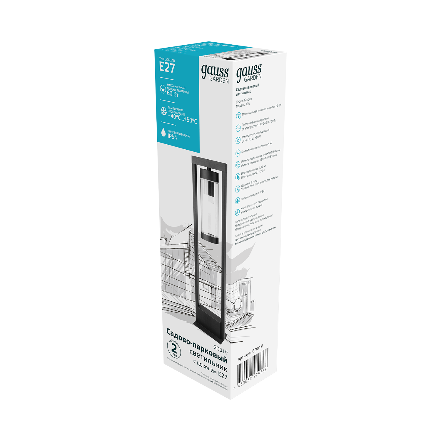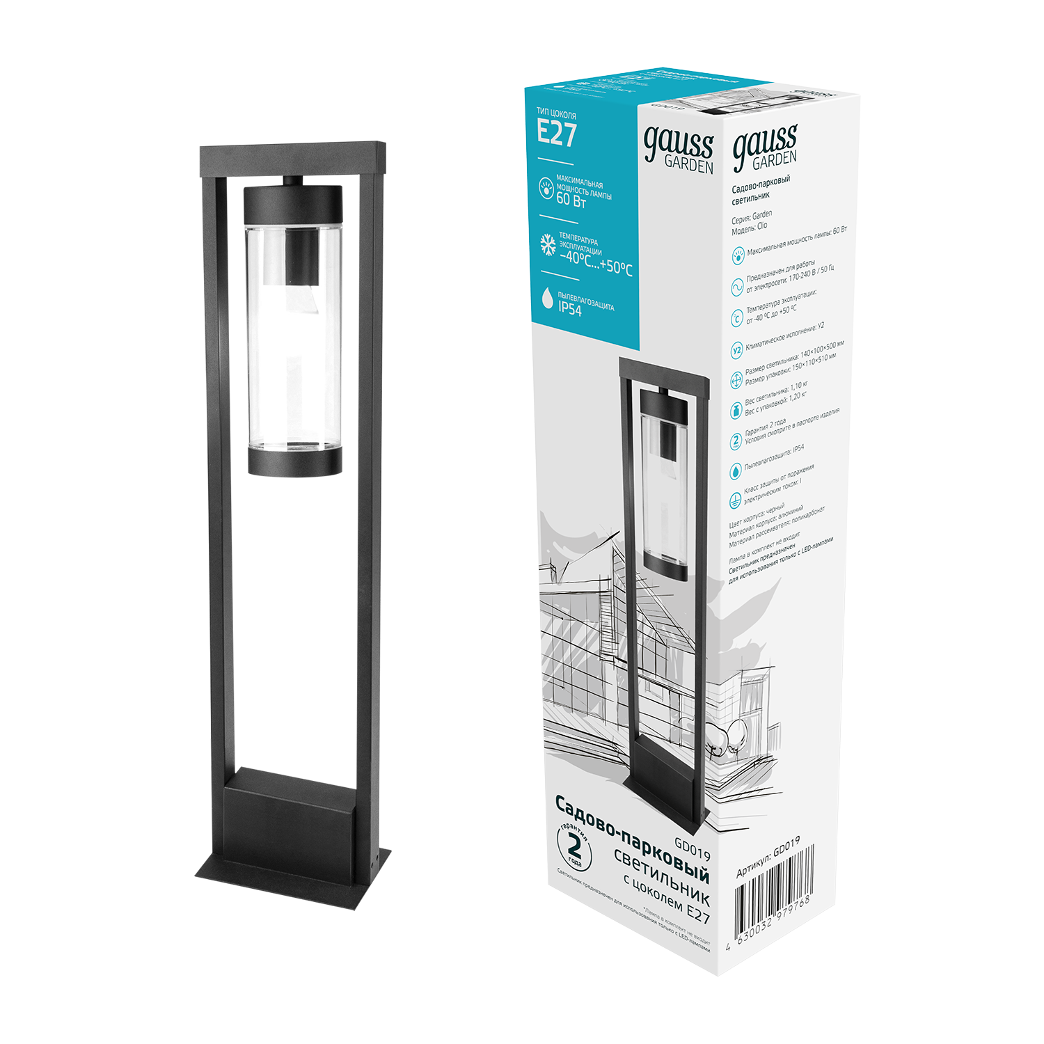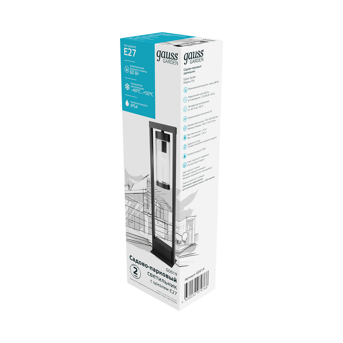 Светильник садово-парк. Gauss GD019 60Вт черный