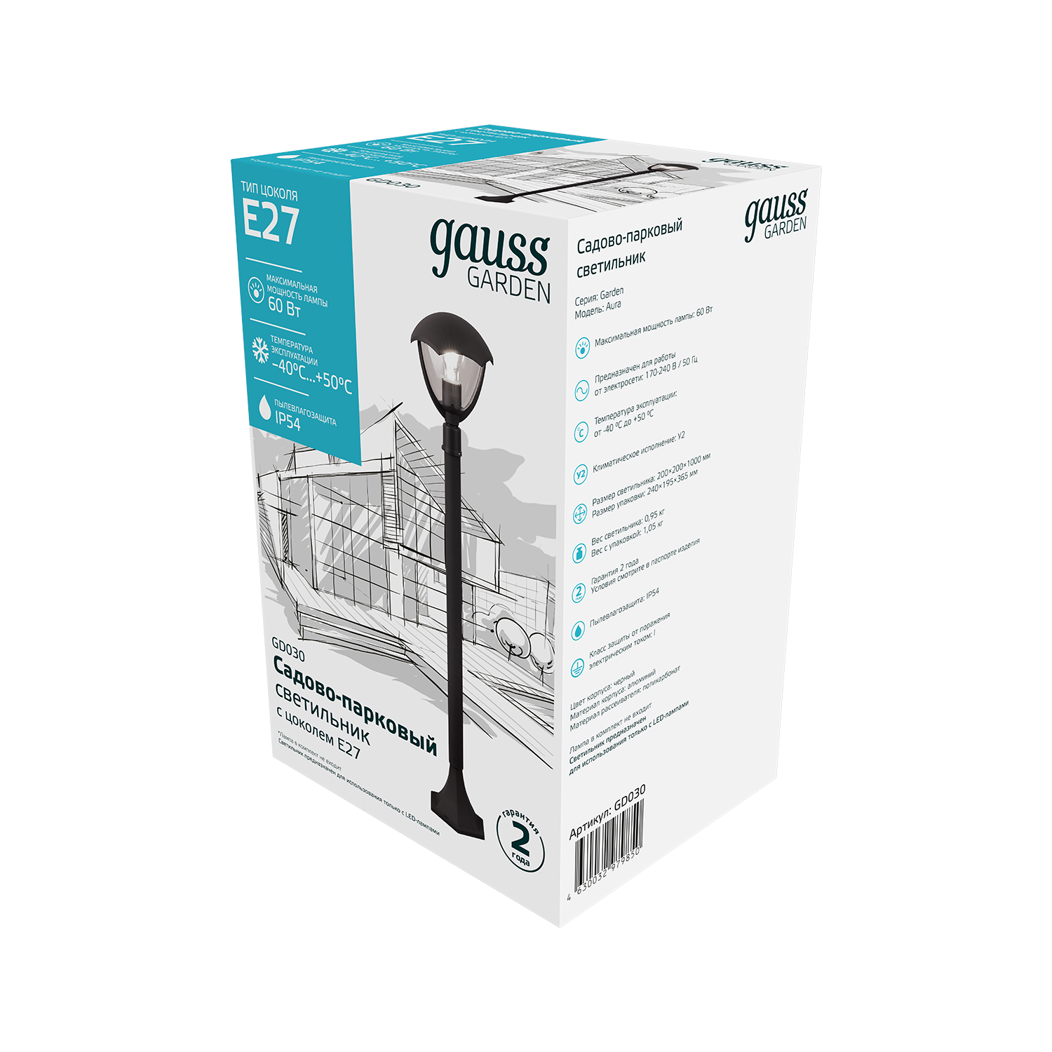 Светильник садово-парковый Gauss Aura столб высотой 1м - это отличное решение для освещения парковых дорожек, скамеек и садовых кабинетов для подсвечивания вечерних чаепитий. Они создают завершенность ландшафтного образа Старинный парк и хорошо сочетаются с другими настенными и постаментными светильниками Gauss. У него такой же алюминиевый корпус покрытый черной антикоррозийной порошковой краской, удобный Е27 патрон, с максимальной мощностью лампы 60w и рабочей температурой от -40 до +50°С. Способ установки лампы - сверху по типу торшер.