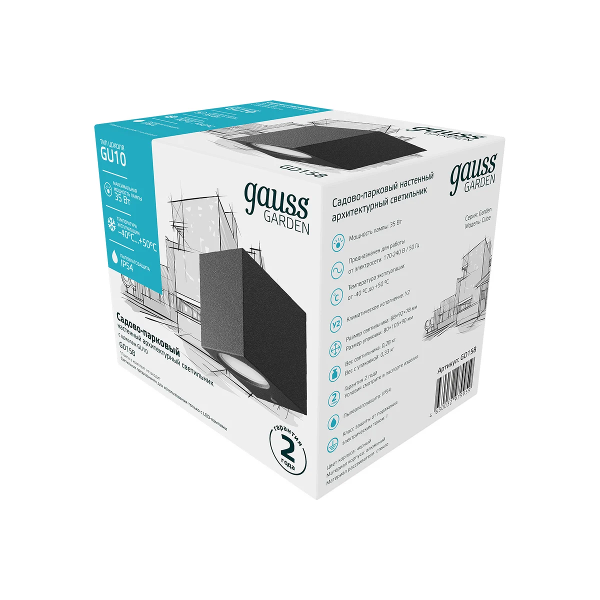 Технические характеристики Gauss 1xGU10, 67х92х80мм GD158