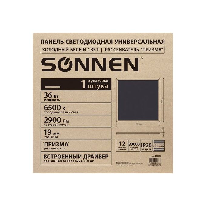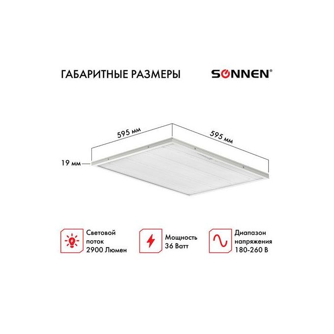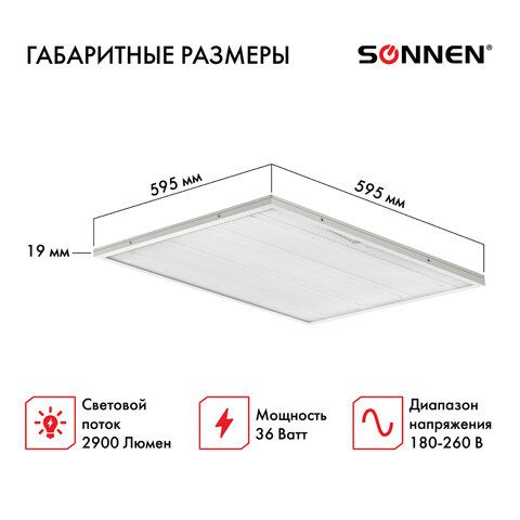 Светильник светодиодный SONNEN 237153 Эко 6500K, холодный белый, 595х595х19мм, 36Вт, прозрачный