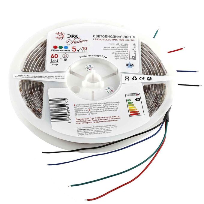 Светодиодная лента ЭРА LS5050-14,4-60-12-4000K-IP65-1 year-5m дневной белый 5м