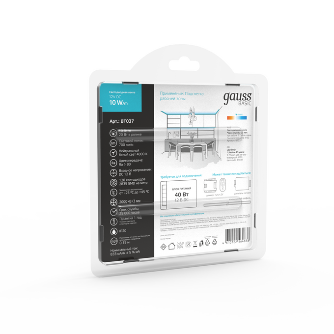 Светодиодная лента GAUSS Basic BT037 10Вт, 2м