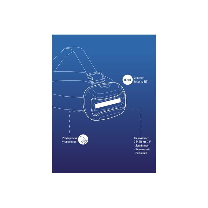 Светодиодный налобный фонарь КОСМОС 3Вт КОБ 417214 KOC-H3WCOBLED обеспечивает превосходное освещение с широким углом рассеивания в локальной зоне. Дает возможность выполнения необходимых работ обеими руками. Устройство имеет три режима яркости, один из которых - мигающий.
