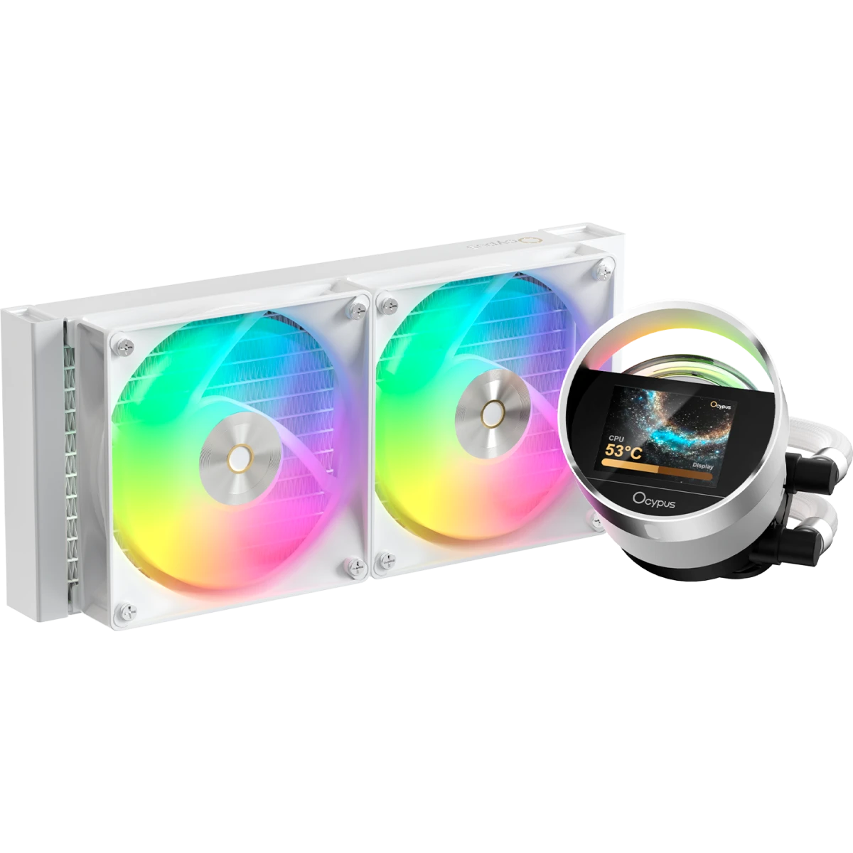 СВО Ocypus Sigma L24 WH ARGB, 240mm, LCD Pump 2.4", 2x120mm ARGB fans, LGA115X/1200/1700/18XX, AM4/AM5