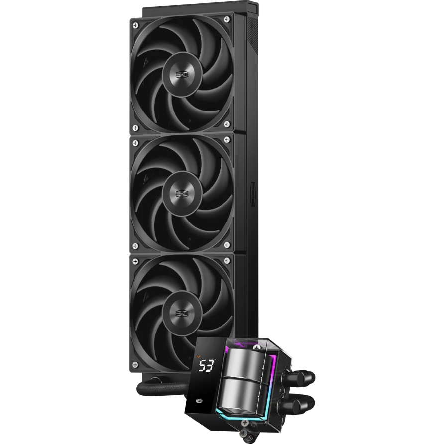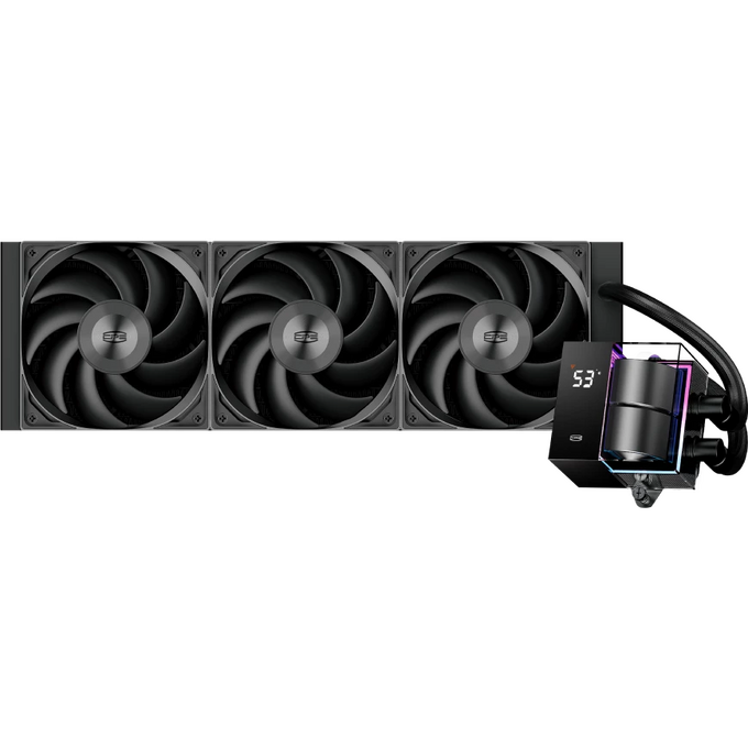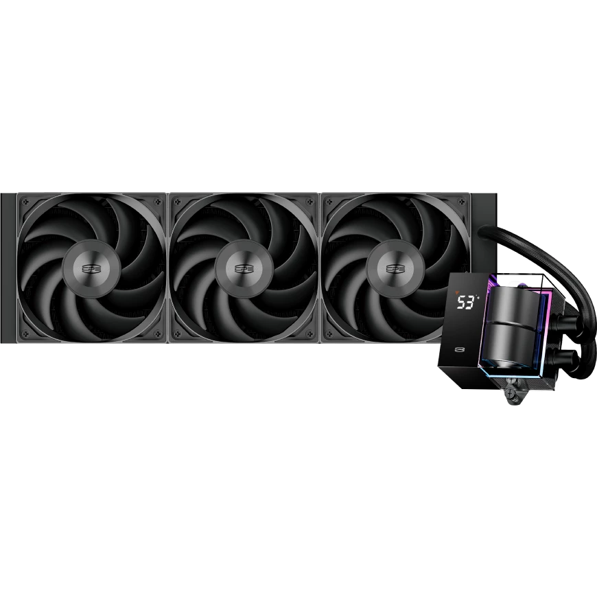 СВО PcCooler DS360 BK (310W, 360mm, LED temp., Black, ARGB Pump/ Fans 3x120mm, 86.73CFM, 28dBA, 2200RPM)